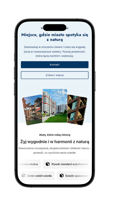 Projektujemy nowoczesne strony inwestycji i firm deweloperskich. Z responsywnym layoutem, intuicyjną wyszukiwarką mieszkań, integracją z CRM i formularzami zapytań. Twoja inwestycja zyska wiarygodność, widoczność i skuteczność – na każdym ekranie.