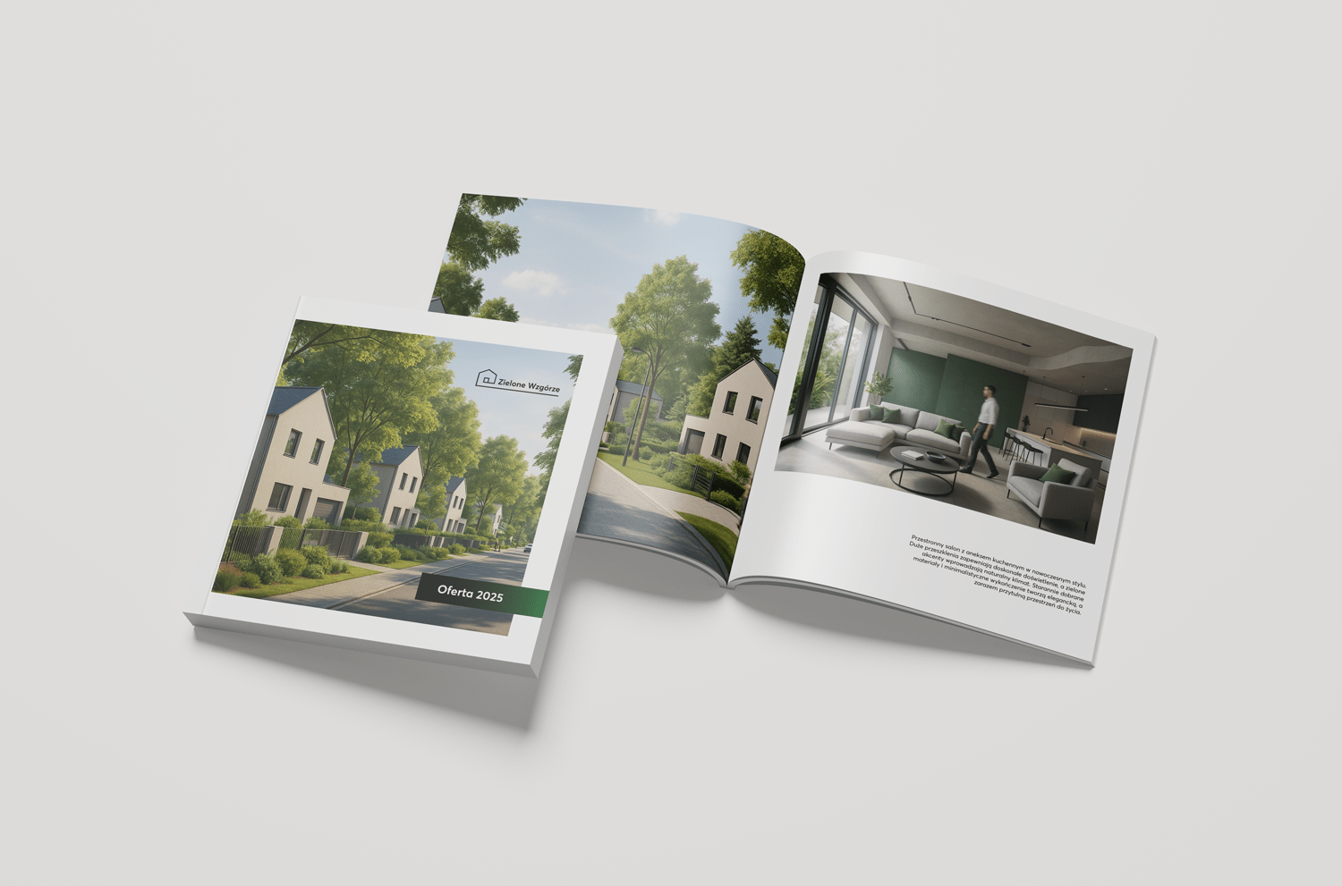 Zaczynamy od fundamentów – nazwa inwestycji, logo, kolorystyka, język komunikacji. Następnie projektujemy estetyczne i przemyślane materiały drukowane: katalogi, teczki, banery, plansze sprzedażowe.
